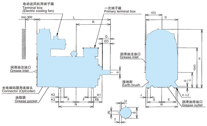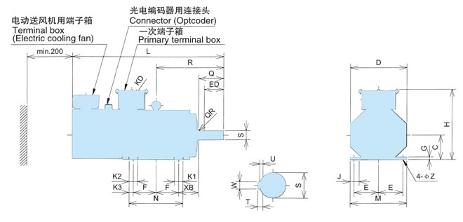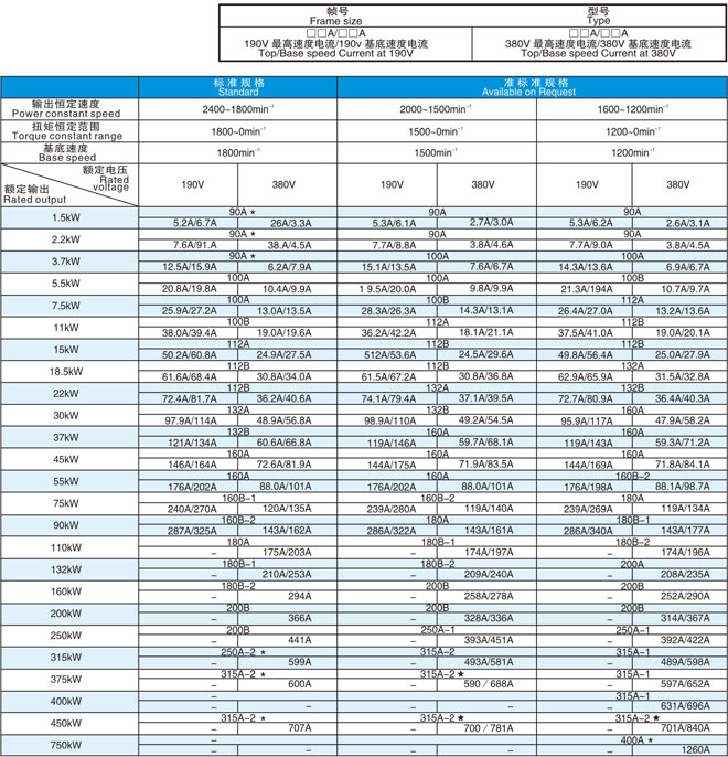 在同一輸出下中心高度比本公司YVF2系列變頻器專用IM下降2格。另外,電機(jī)重量也有大幅度減輕。(與本公司YVF2系列變壓器專用IM相比減輕32-57%